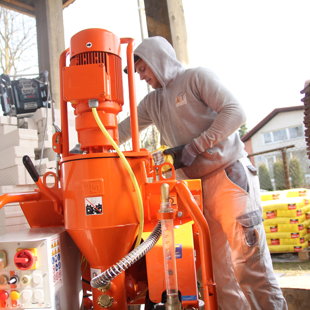 Cementa kaļka apmetums Ceresit ZKP Apmetuma masas pūsšana uz sienas.